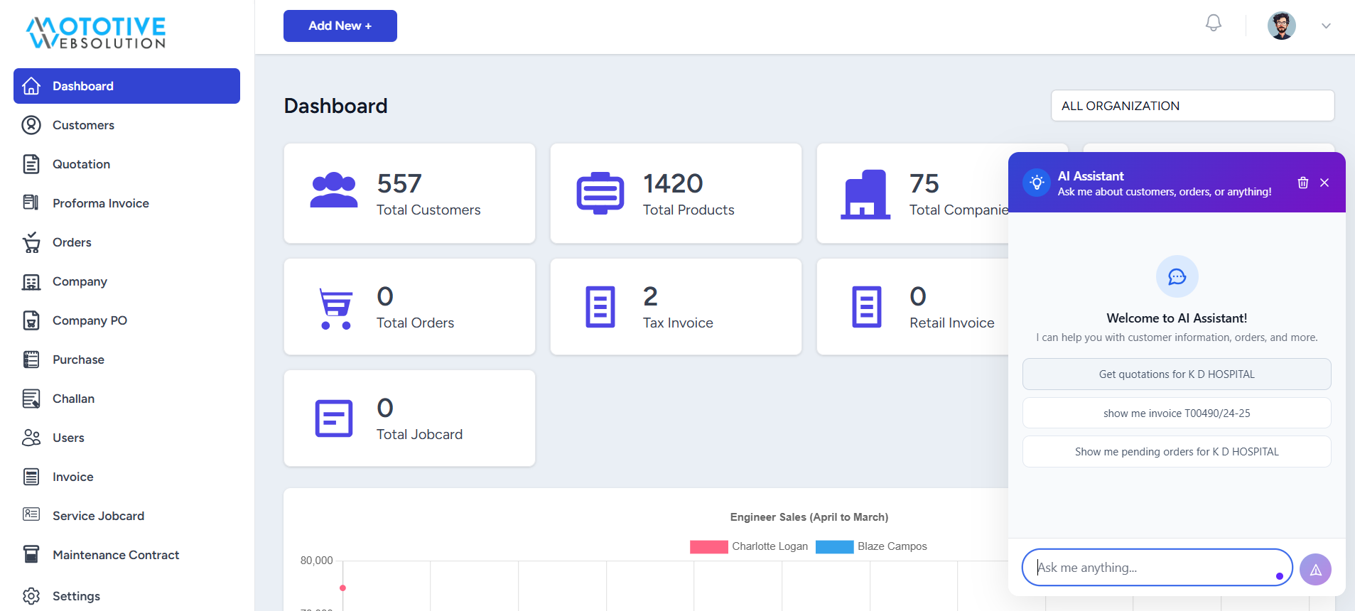 This is a custom ERP solution developed for a medical equipment company. It enhances efficiency, tracking, and reporting across sales and service workflows in the medical equipment domain.