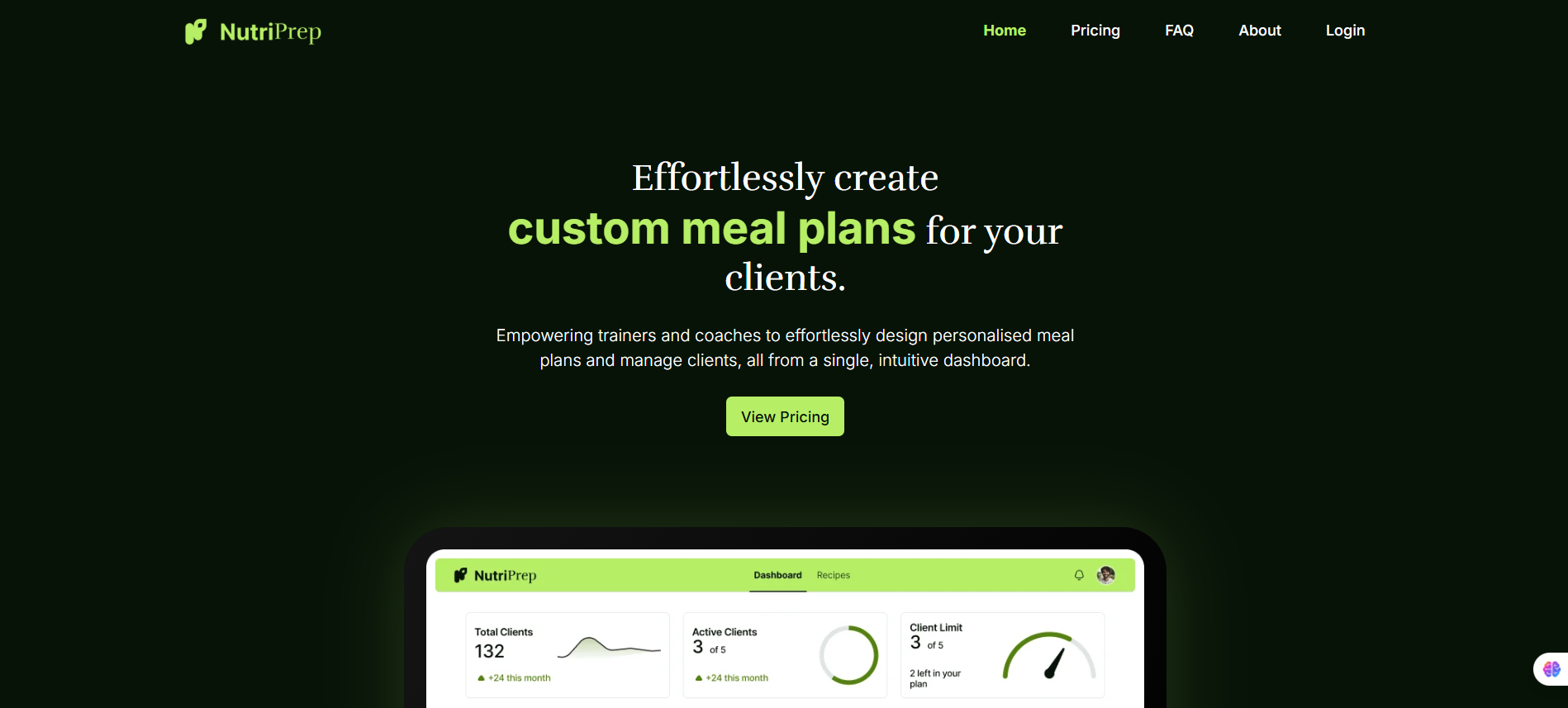 NutriPrep is a web-based platform designed for personal trainers and coaches to effortlessly create and manage custom meal plans for clients via a streamlined dashboard