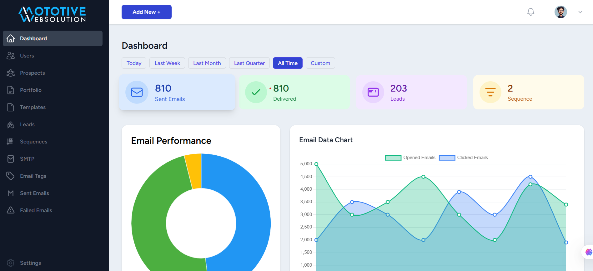 This lead management system helps streamline the sales process by create email sequences, and manage prospects efficiently. It supports automated outreach, portfolio tracking, and customizable email templates to enhance engagement and conversion.